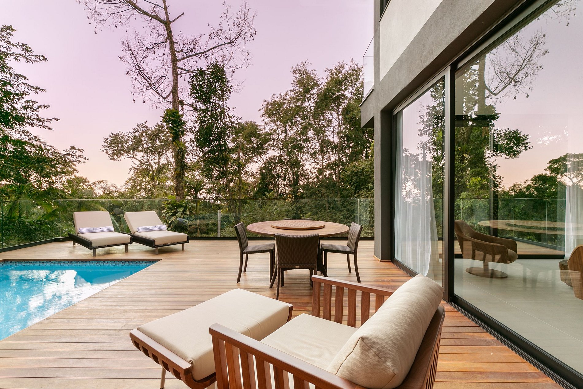 Localizada em um região tranquila e segura do Guarujá, esta casa é um verdadeiro refúgio de tranquilidade. Com uma arquitetura moderna e arrojada, a casa se destaca em meio ao verdejante entorno natural, criando um contraste harmonioso e agradável aos olhos.