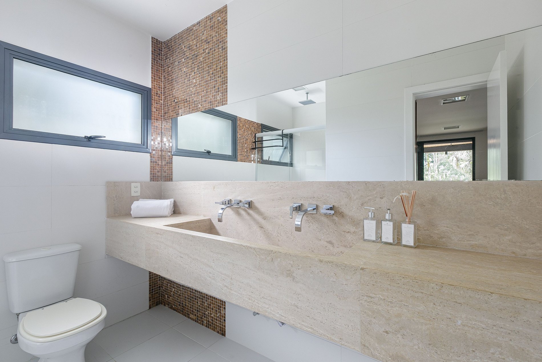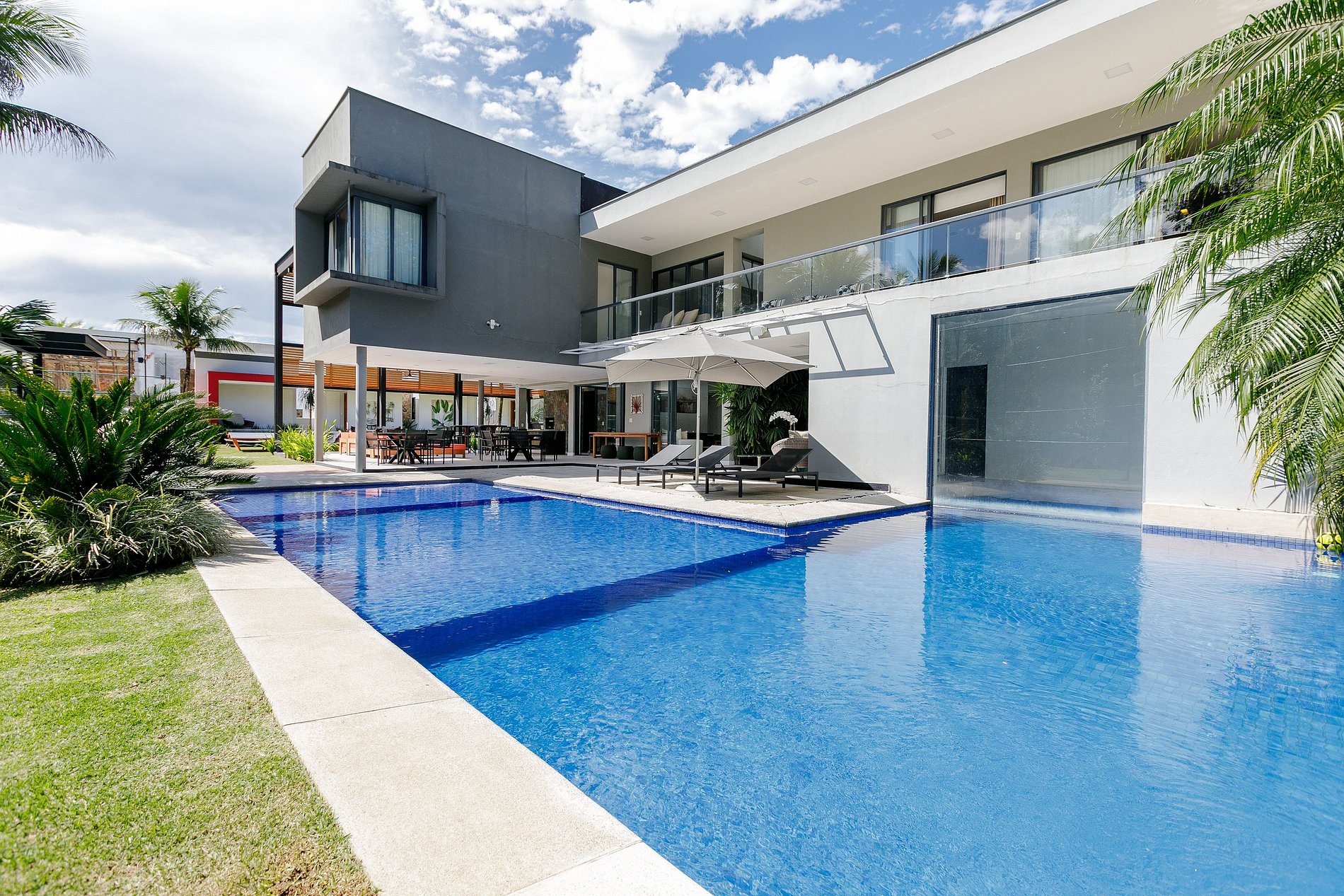 Podemos definir essa mansão como a síntese do encontro entre luxo, conforto e modernidade. Composta por duas edificações, uma casa principal e uma adjacente, cada cantinho de suas áreas internas foi pensado e decorado com cuidado para a experiência dos que aqui se hospedam ser a mais especial. Móveis de design, acabamentos e utensílios de primeira linha, muita luz natural e, à noite, o charme é reforçado pelo light design que proporciona um ambiente harmonioso e acolhedor.