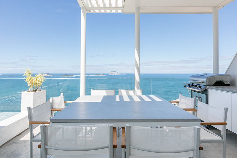 Contemplar o nascer do dia dessa cobertura é, definitivamente, uma experiência única e totalmente inesquecível. A vista que encontramos ao adentrar esse duplex de 241m2 é inédita até para muitos cariocas. Por si só, este já seria motivo suficiente para elegermos essa propriedade uma verdadeira pérola do nosso portfólio escondida no Morro do Vidigal, mas as razões não param por aí e esta cobertura ainda tem muito a oferecer.