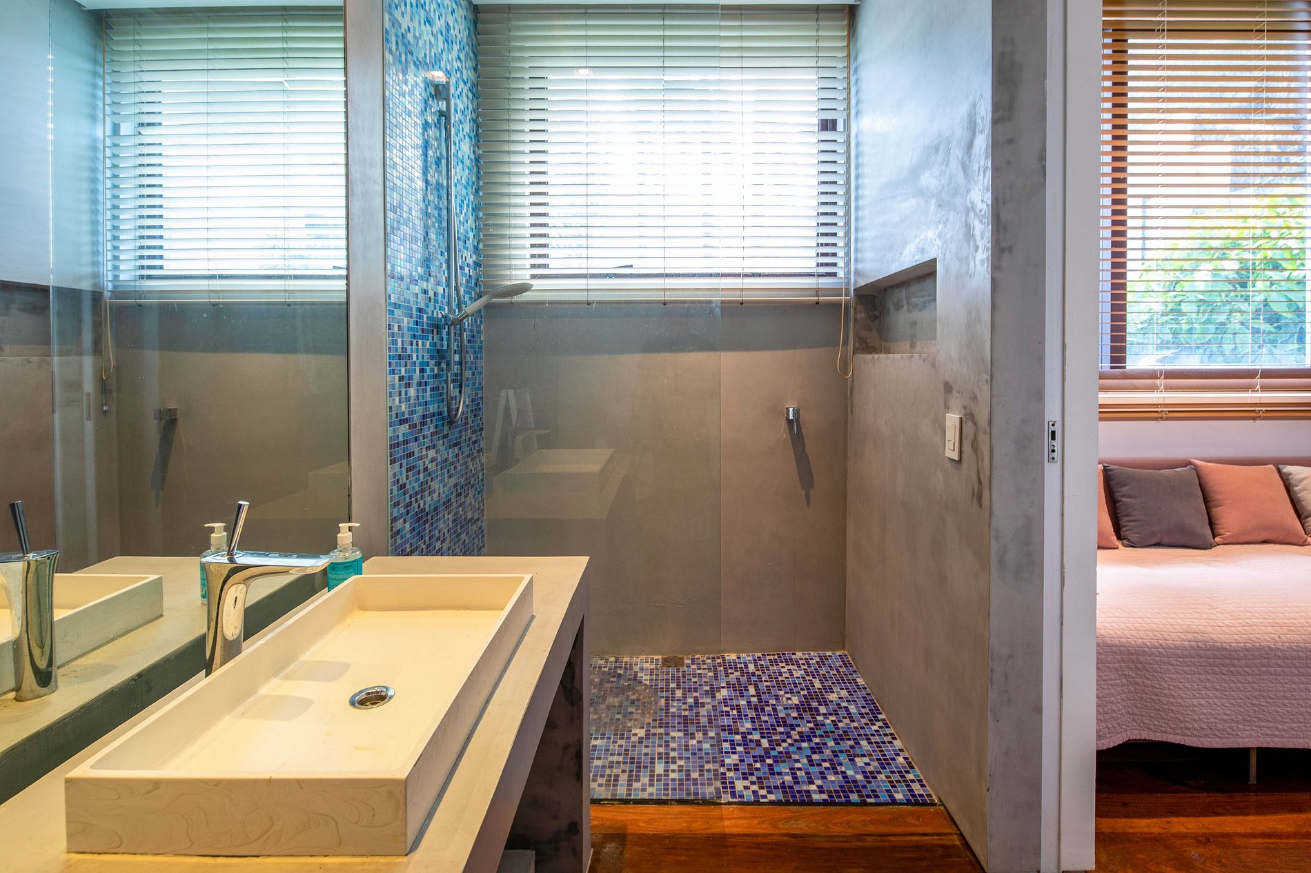 A vila possui belos pisos de madeira por toda parte, mobiliário moderno e todas as comodidades. As paredes brancas mantêm a temperatura ambiente agradável, combinadas com pedra brasileira natural para um efeito impressionante. A cozinha é muito espaçosa e totalmente equipada, além de possuir uma parede de vidro voltada para o oceano.