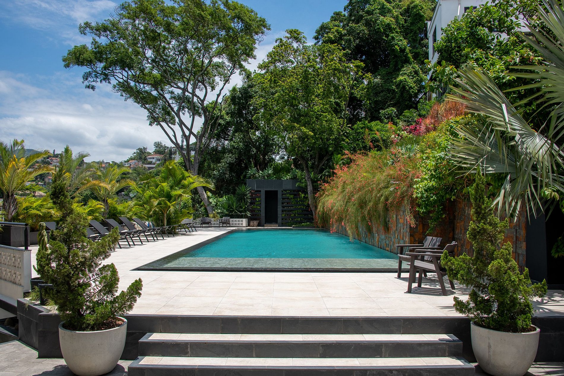 A área da piscina é um dos principais destaques da mansão, oferecendo uma vista inigualável para Santa Teresa e do mar. Além disso, os hóspedes podem desfrutar de outras áreas de lazer, incluindo uma área para o clássico jogo francês pétanque.