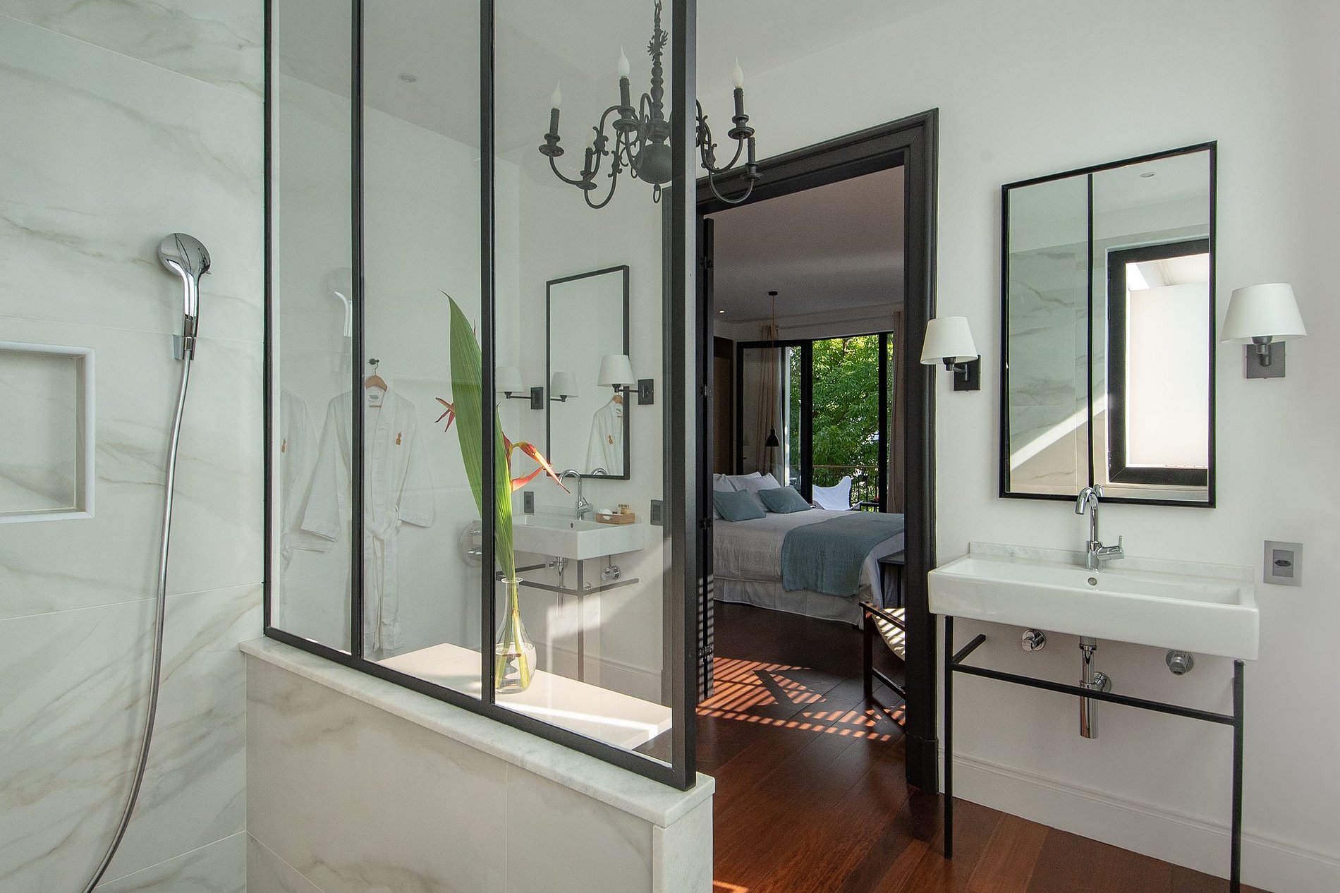 Todos os quartos possuem guarda roupas com cofre, janelas acústicas, frigobar e máquina Nespresso, além de uma ampla varanda com vista para o mar ou jardim. O wifi de alta velocidade está disponível em toda a propriedade, e o ar-condicionado garante o conforto em todas as épocas do ano.