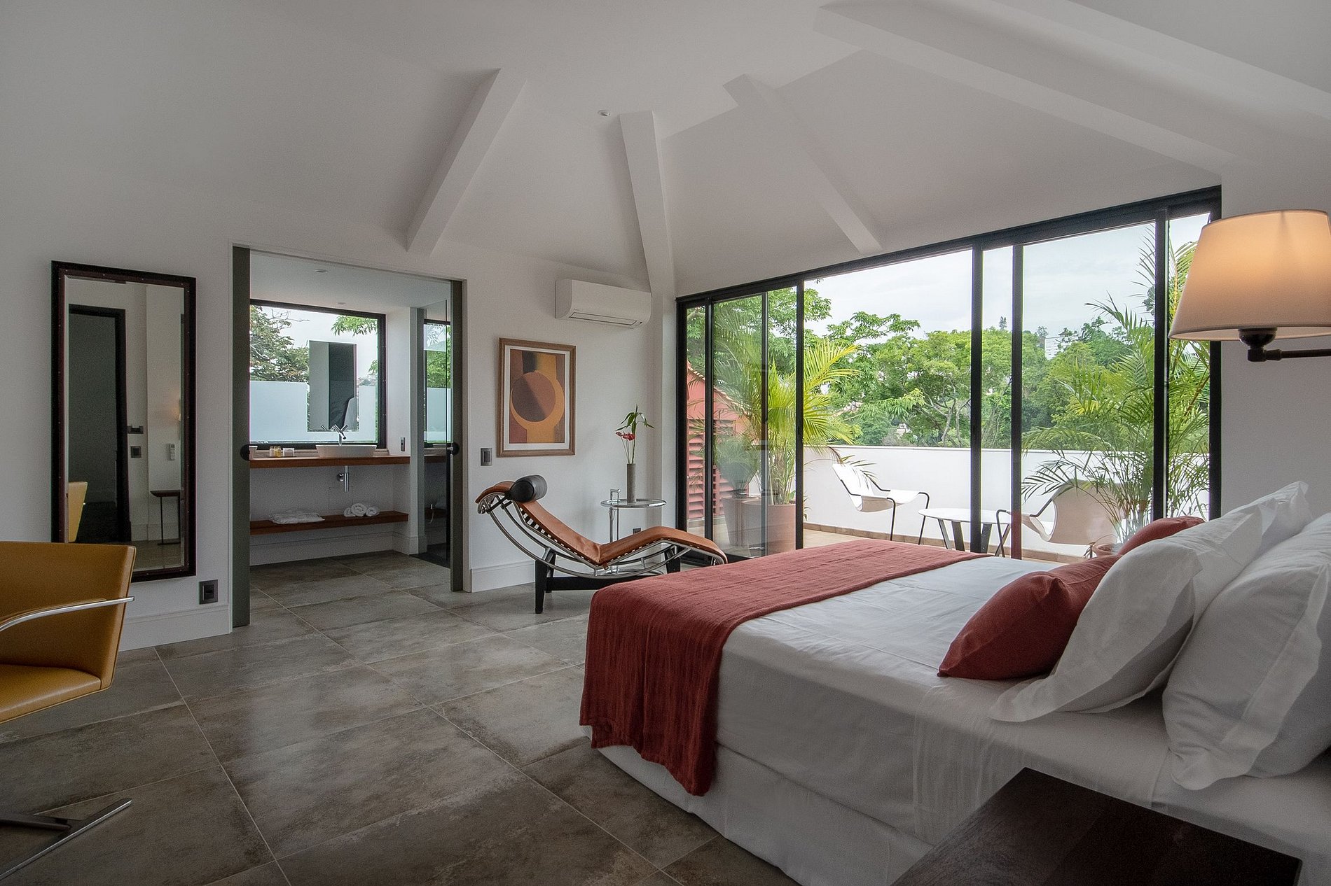 Esta luxuosa mansão em Santa Teresa, no Rio de Janeiro, é um verdadeiro oásis em meio à natureza. Com foco na preservação florestal e da fauna local, os jardins ao redor da propriedade criam uma atmosfera serena e tranquila para os hóspedes.