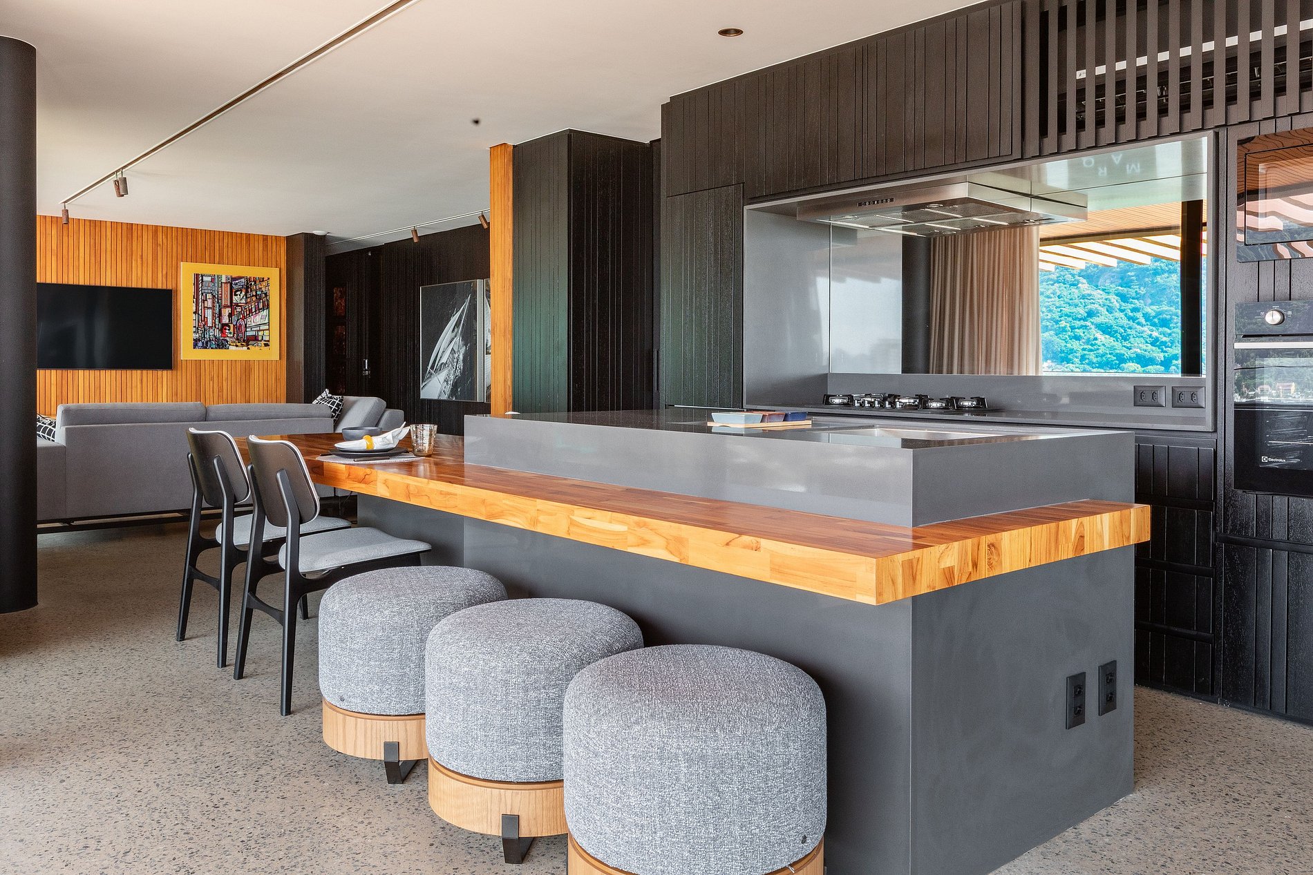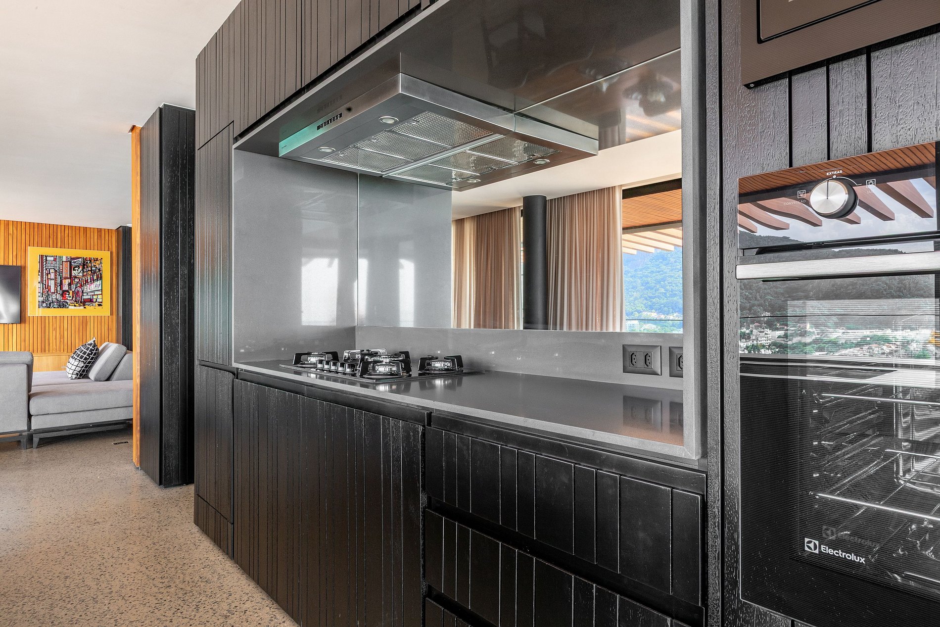 Inspirada na sensação de um grande cruzeiro flutuando sobre o mar, a propriedade impressiona com suas amplas varandas e ambientes envidraçados que capturam a imensidão do horizonte. O cenário dinâmico da Joatinga, com suas águas cristalinas e falésias exuberantes, se desenrola diante dos olhos, enquanto a prática de esportes aquáticos e a vida selvagem complementam o espetáculo diário dessa localização privilegiada.