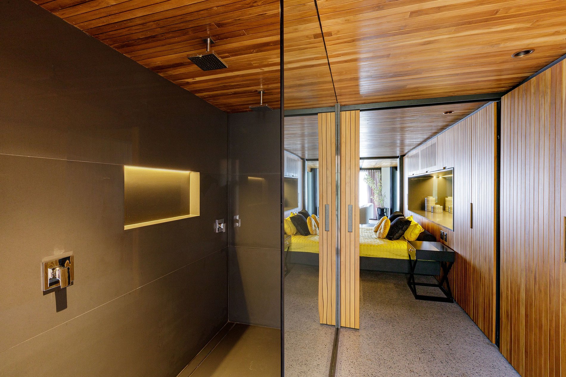 Inspirada na sensação de um grande cruzeiro flutuando sobre o mar, a propriedade impressiona com suas amplas varandas e ambientes envidraçados que capturam a imensidão do horizonte. O cenário dinâmico da Joatinga, com suas águas cristalinas e falésias exuberantes, se desenrola diante dos olhos, enquanto a prática de esportes aquáticos e a vida selvagem complementam o espetáculo diário dessa localização privilegiada.
