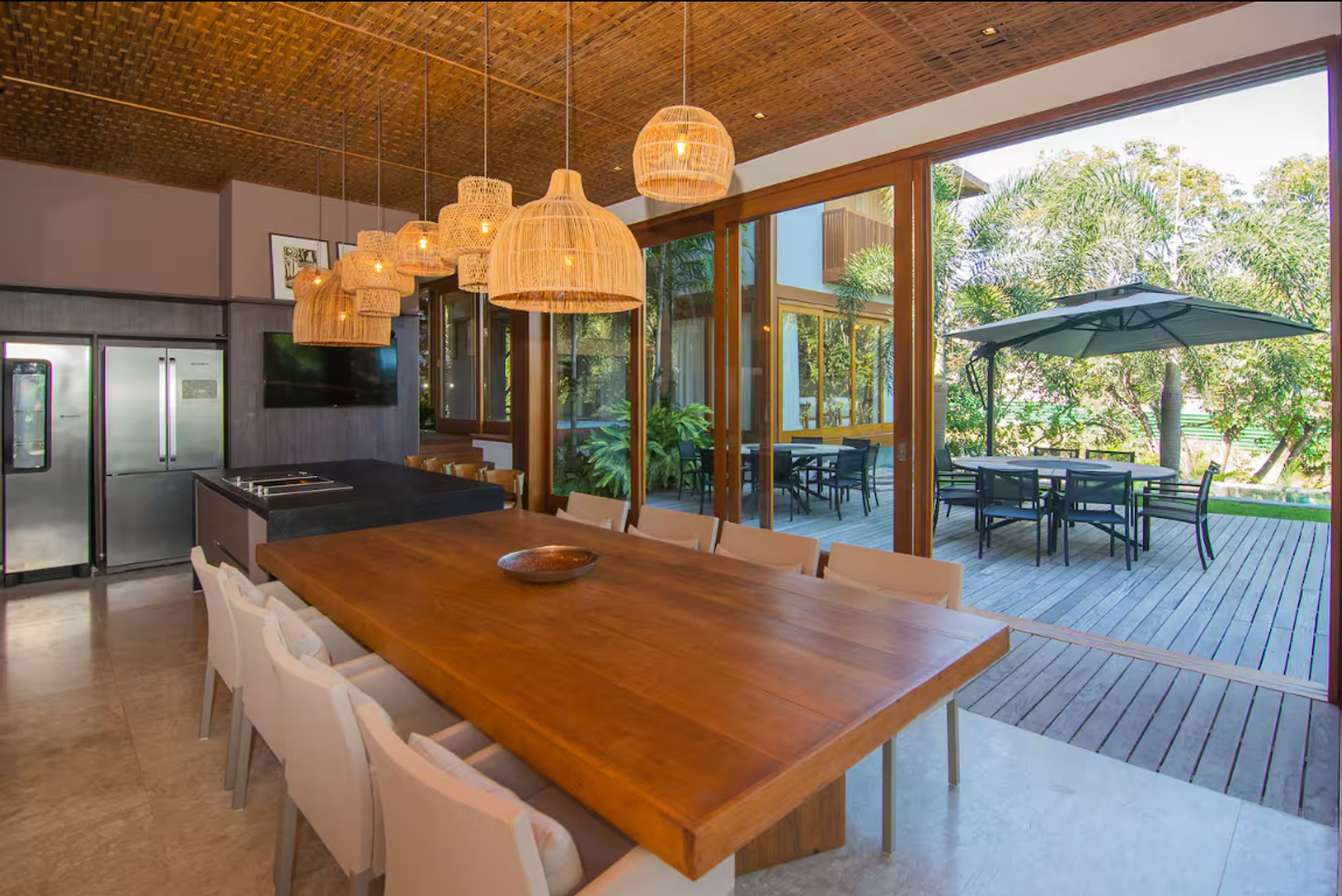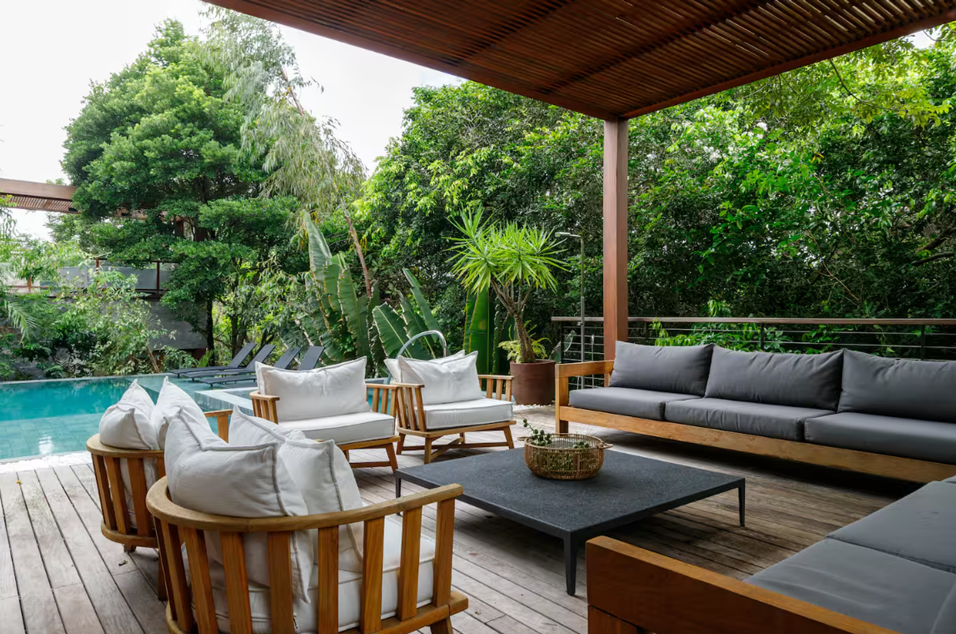 Internamente, cada detalhe foi cuidadosamente pensado para combinar funcionalidade com elegância. As cinco suítes com ar-condicionado garantem noites tranquilas, enquanto a suíte master com jacuzzi e closet proporciona um verdadeiro refúgio particular. A sala integrada com smart TV e Wi-Fi, o espaço gourmet com churrasqueira, cervejeira e adega, e a cozinha completa tornam o ambiente ideal tanto para momentos em família quanto para encontros entre amigos.