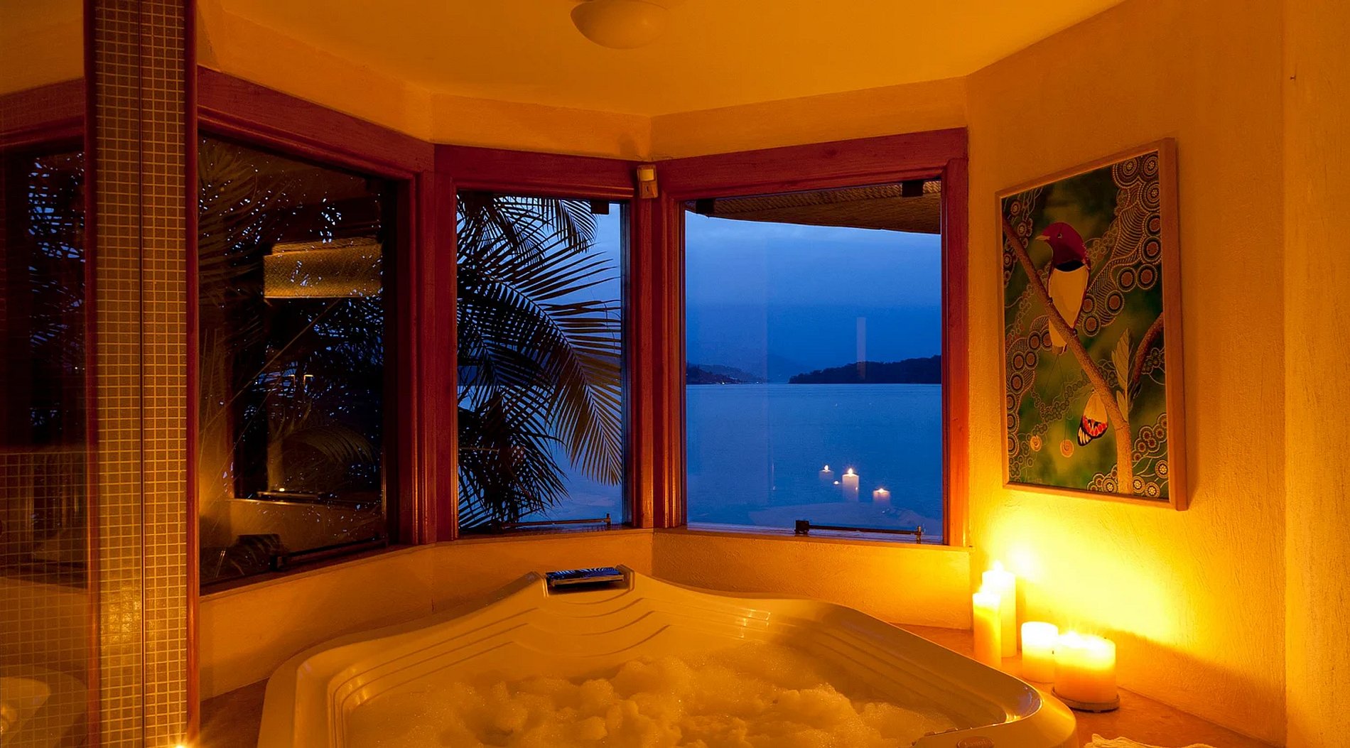 A área externa é um espetáculo à parte: uma praia privativa de águas cristalinas, piscina aquecida com vista panorâmica, jacuzzi ao ar livre, sauna seca e um bar de chopp tornam os dias ainda mais prazerosos. A estrutura gourmet conta com churrasqueira, ampla mesa de jantar e espaço para jogos com mesa de carteado, proporcionando lazer e diversão para todos.