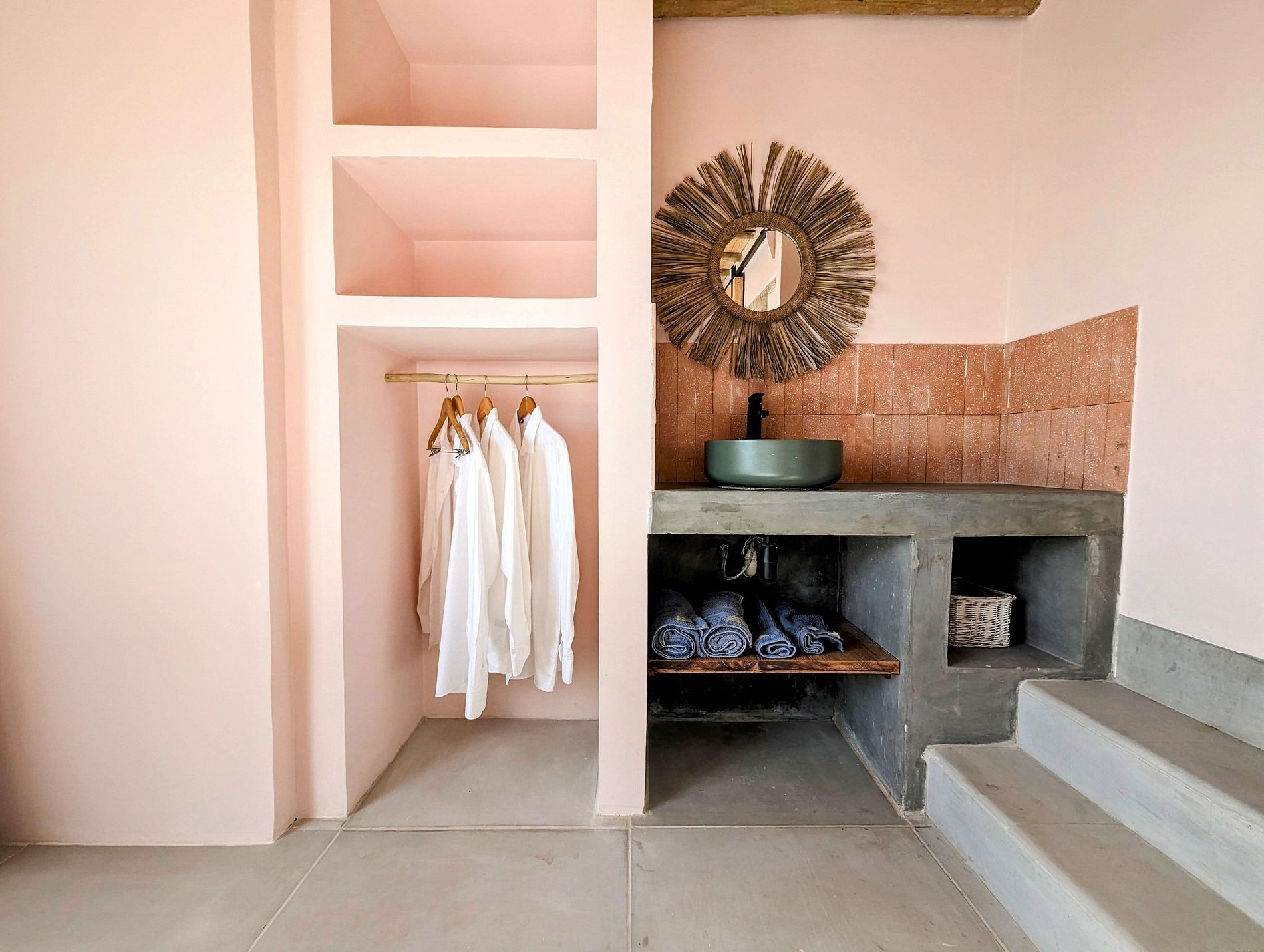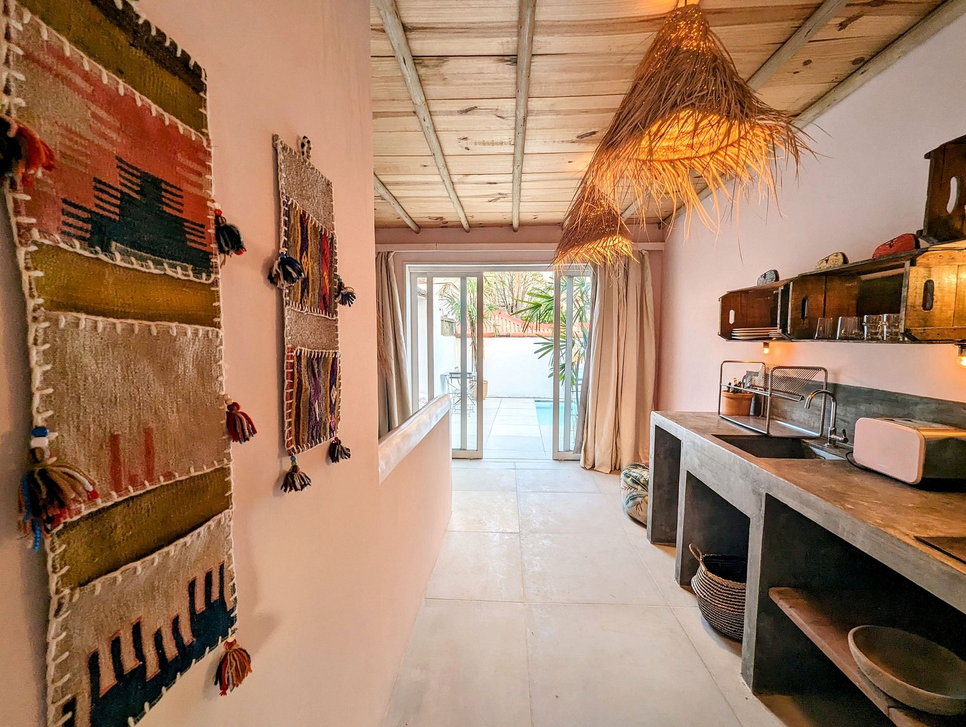 Os apartamentos presentes nesta casa são simplesmente de tirar o fôlego. Cada um deles possui uma personalidade distinta, refletindo a riqueza das inspirações que os cercam. Desde o apartamento Mykonos, que nos remete às encantadoras ilhas gregas, até os elementos árabes, especialmente marroquinos, que pontuam vários espaços da residência, cada detalhe é cuidadosamente pensado para proporcionar uma experiência memorável.