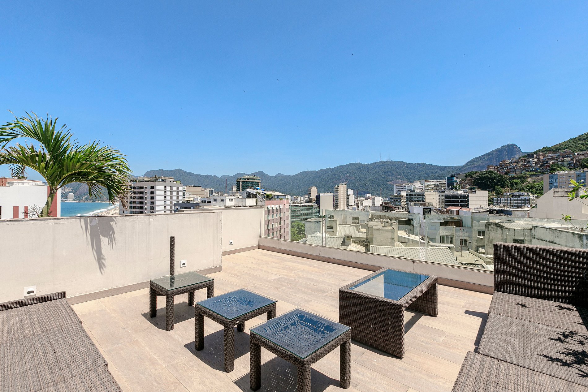 O ponto alto desta cobertura é, sem dúvida, o grande terraço que se estende diante de você, com uma piscina privativa convidativa e uma vista panorâmica simplesmente fantástica. Este é o lugar perfeito para relaxar, socializar e apreciar a beleza natural que Ipanema oferece.