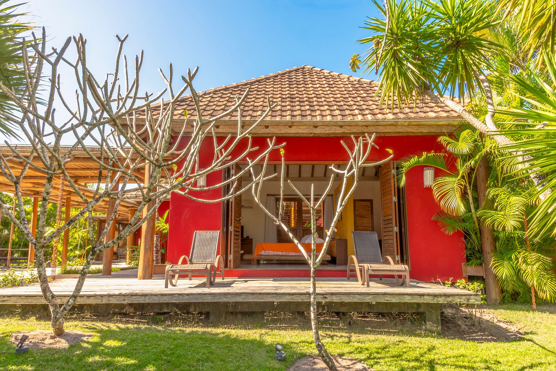 Вилла предлагает три просторных люкса: два с кроватями king-size и один с кроватью queen-size, оформленные с вниманием к комфорту и стилю. Также есть две дополнительные спальни с односпальными кроватями и общей ванной комнатой. Такой формат делает виллу идеальной для семей или компаний друзей, ищущих незабываемый отдых в Транкозу. Всего дом с комфортом вмещает до десяти гостей, обеспечивая простор и приватность.