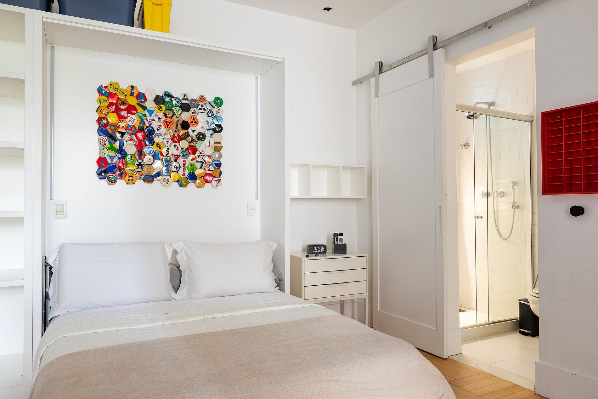 Приватная зона грамотно организована. Главная спальня с ванной комнатой оснащена кроватью king size. Во второй спальне установлена кровать queen size, рядом расположен полноценный санузел. Третья спальня с собственной ванной комнатой оборудована двумя односпальными кроватями и дополнительной выдвижной кроватью, комфортно размещая до четырёх человек. В апартаментах также есть кабинет или комната для работы, идеально подходящая для удалённой деятельности.