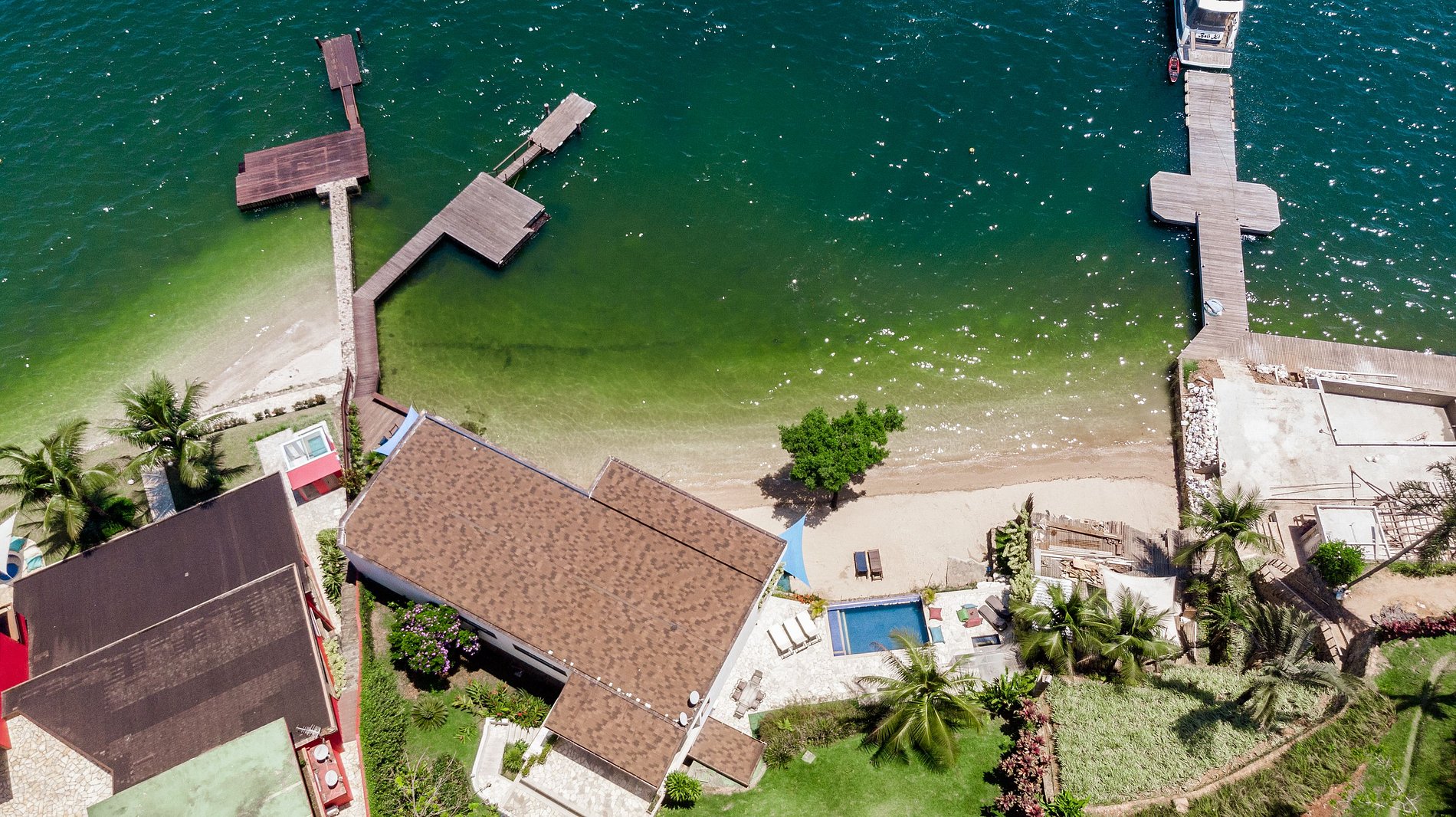 Во внешней зоне вы можете насладиться бассейном и гидромассажем, полной меблировкой, гурманской зоной с барбекю, садами, сауной и террасой. Для облегчения передвижения по региону этот особняк также имеет две вертолетные площадки и пирс с тремя причалами для яхт длиной до 100 футов.