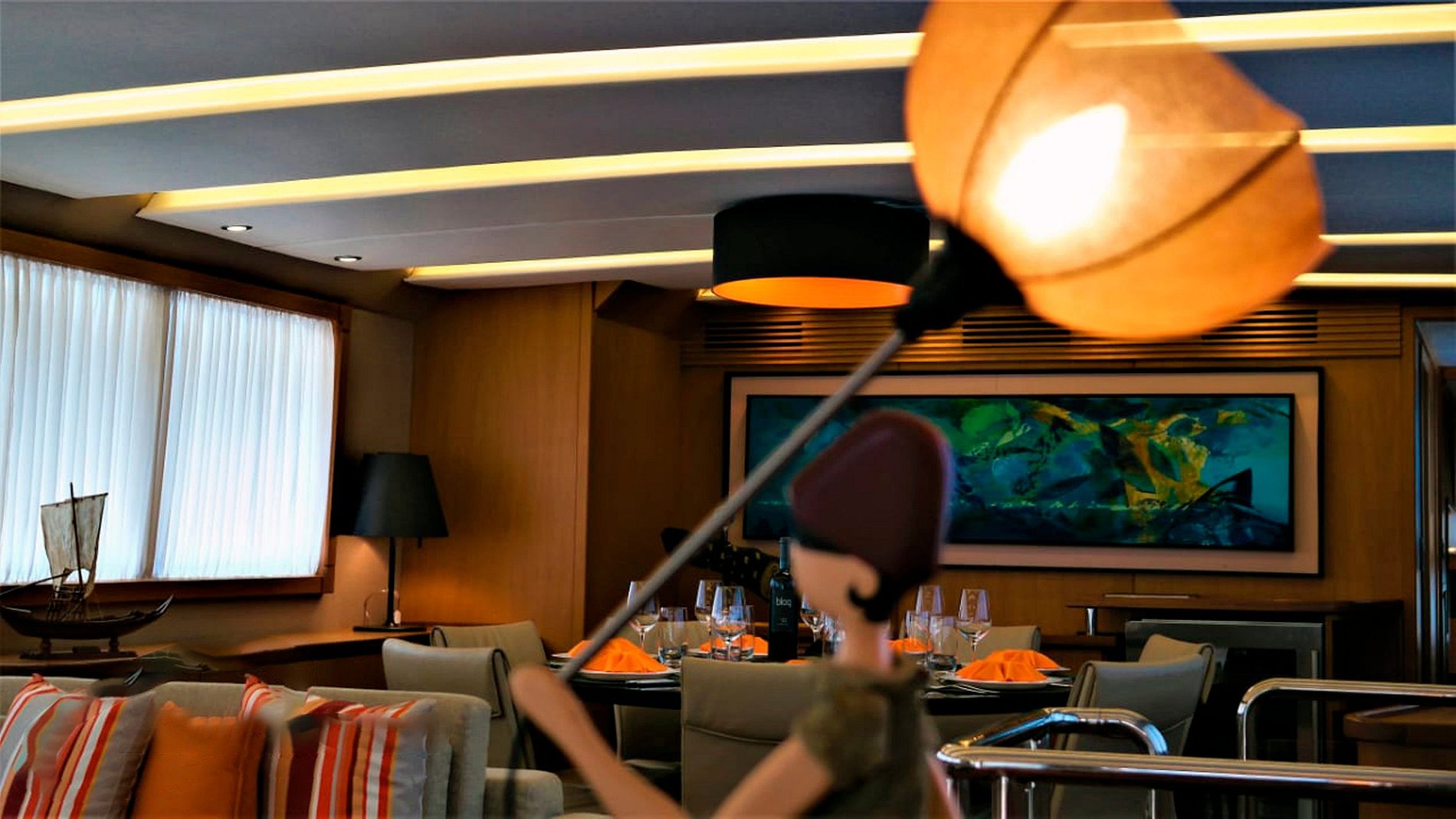 На этой яхте есть 5 кают, 5 ванных комнат, гостиная, ТВ-зал, полностью оборудованная столовая, прачечная, джакузи, ванна, барбекю, бар и многое другое.