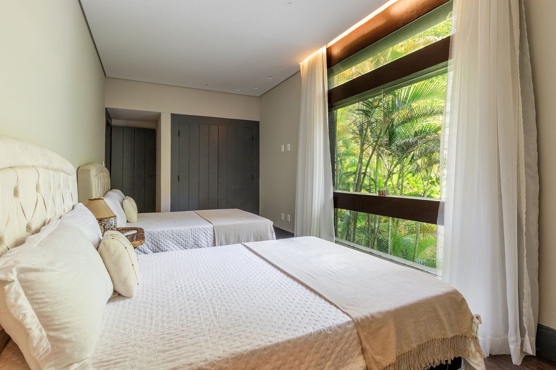 Главная спальня, оборудованная кроватью размера "king-size", предлагает великолепный панорамный вид на природу и город, а также просторную ванную комнату с ванной, двойной раковиной и гардеробной.