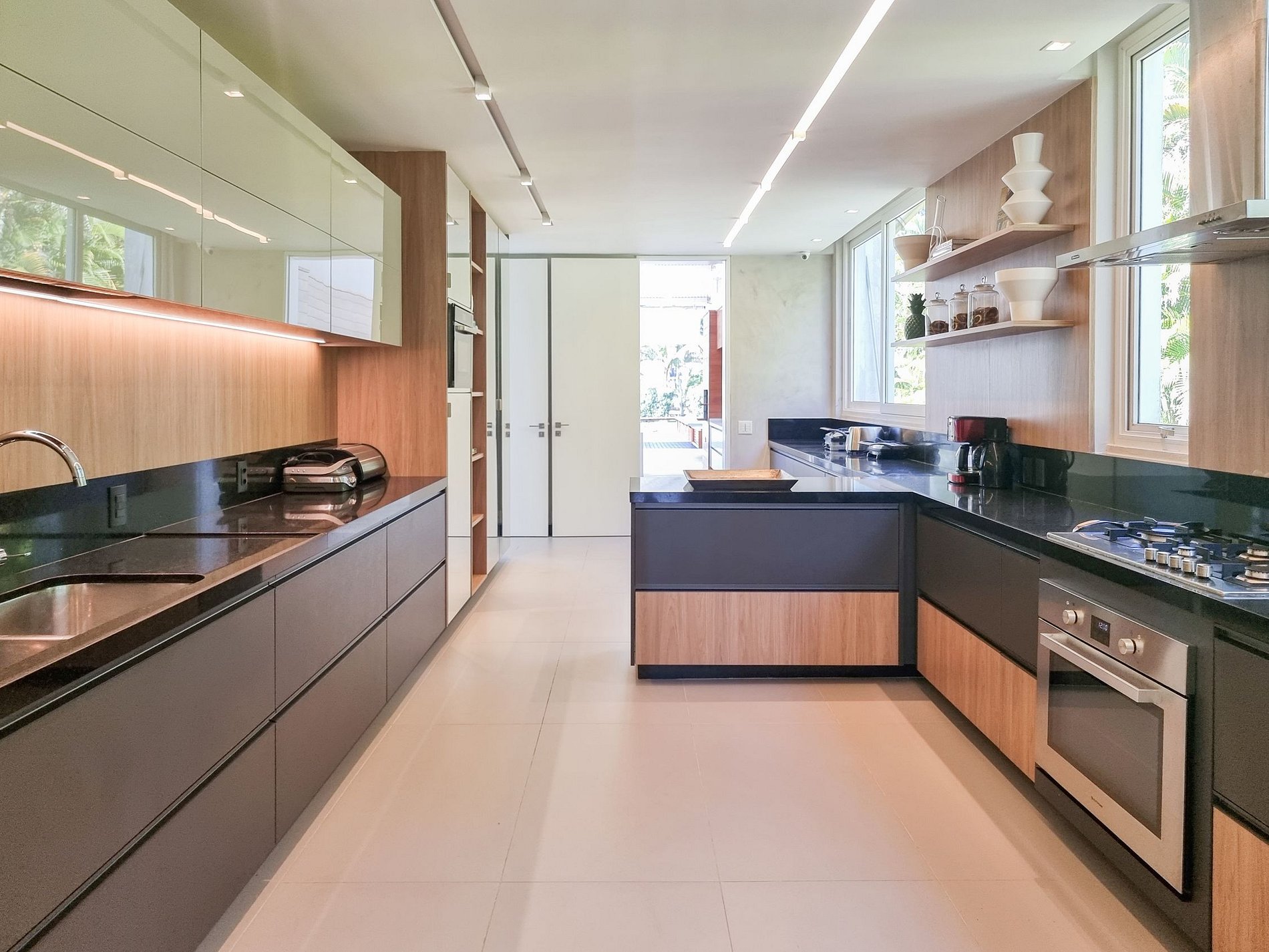 The outdoor kitchen is equipped with everything you need to have a barbecue with friends and family. The indoor kitchen, with 2 refrigerators and a pantry, has the ideal structure to cook like a gourmet chef. The house also has 1 laundry area, with washing machine and dryer and 6 covered parking spaces for cars.