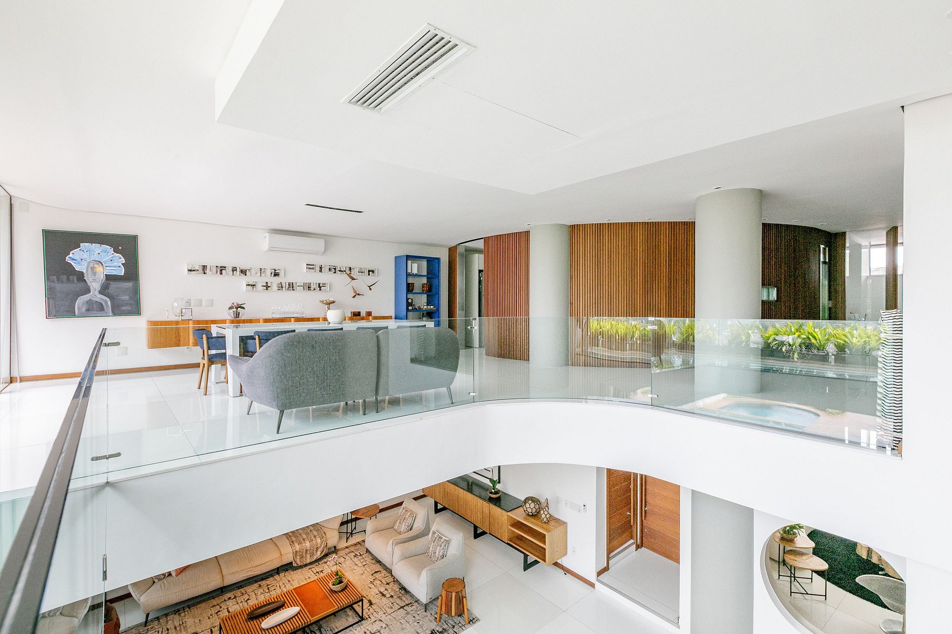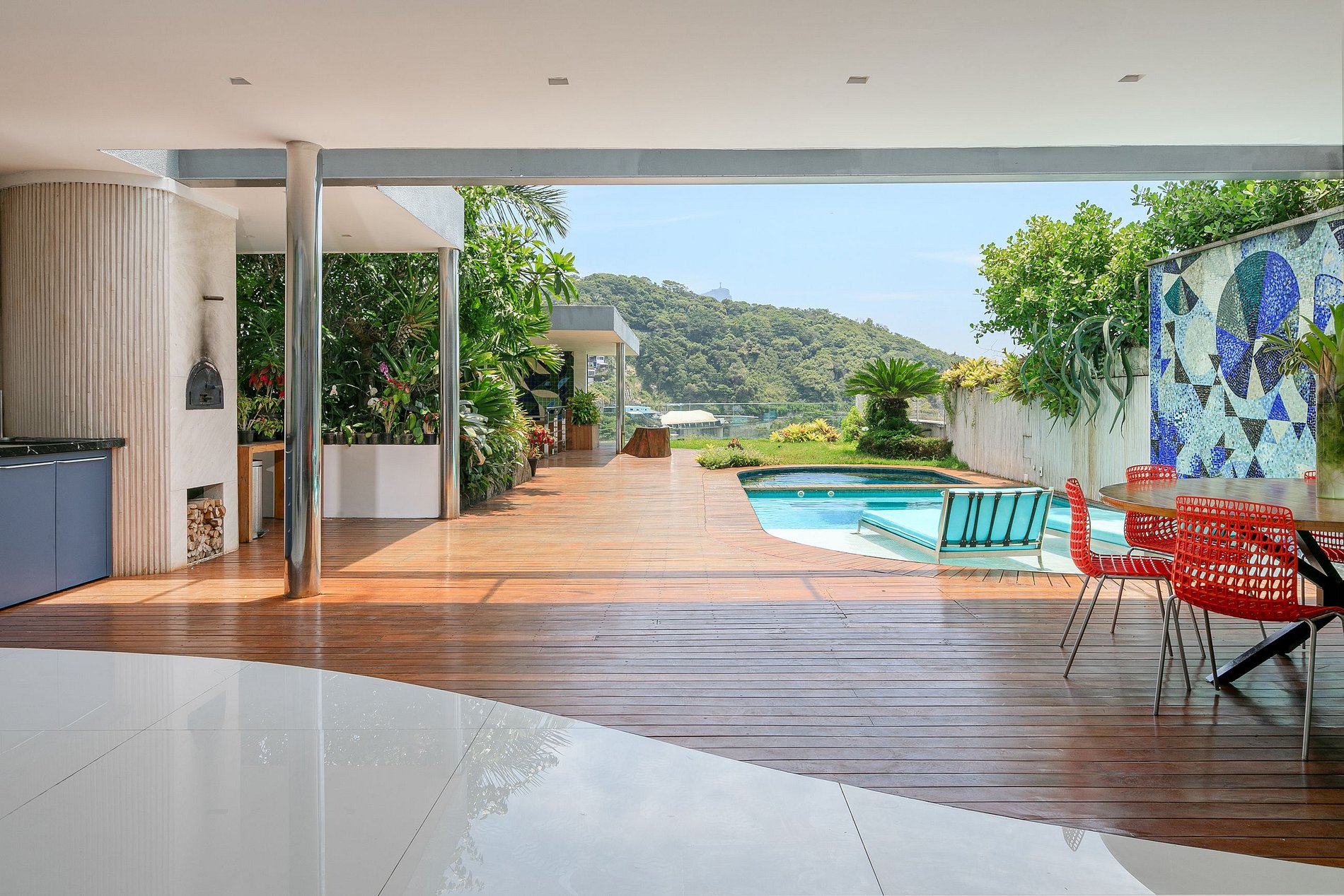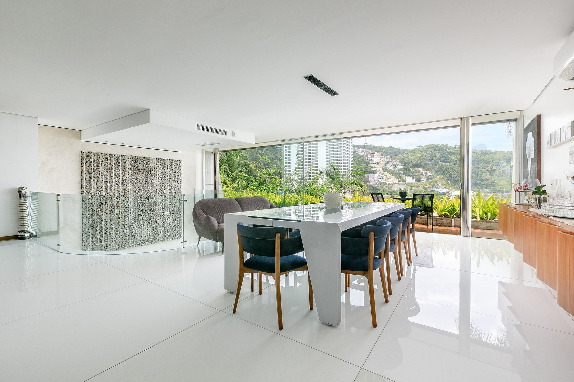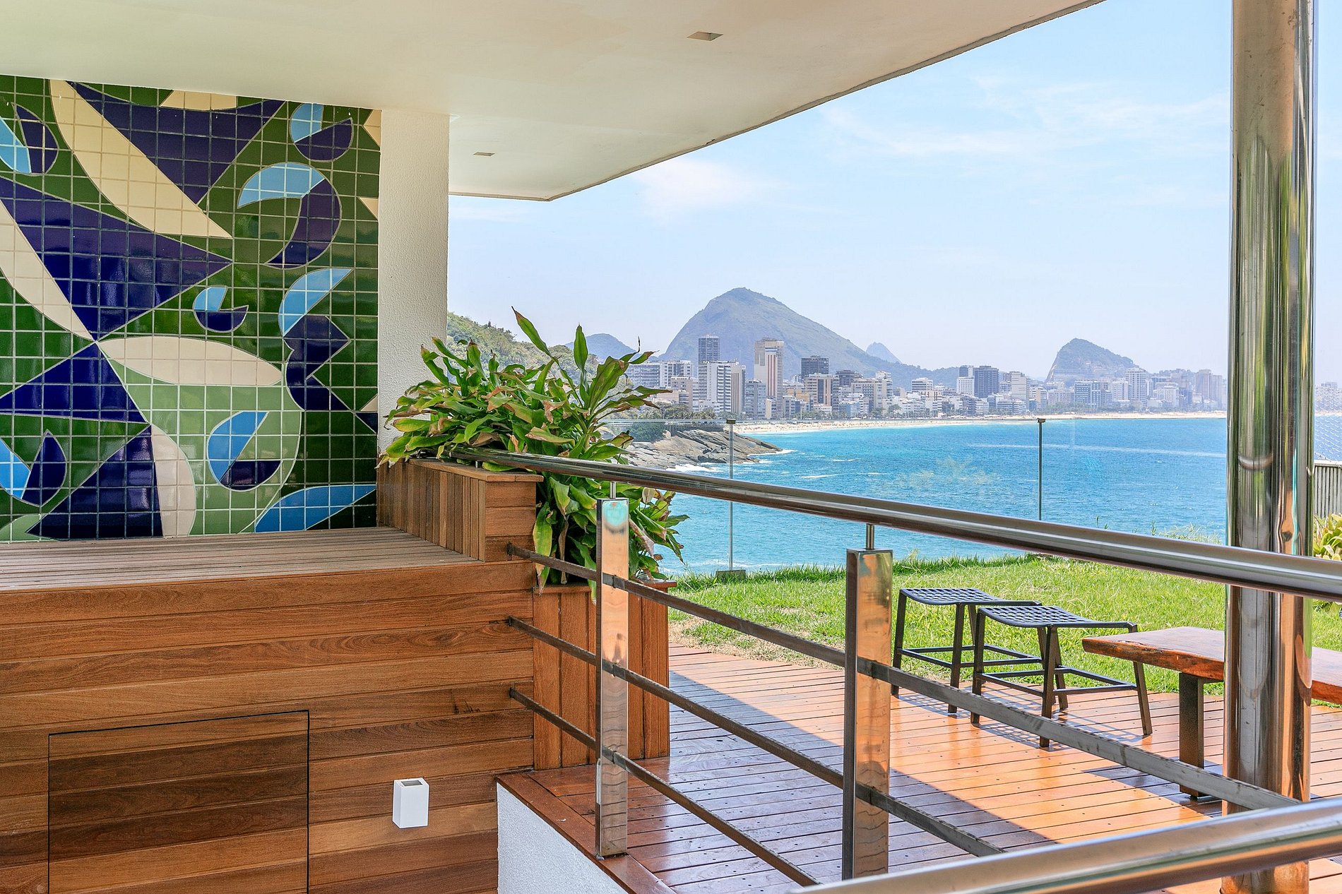 Основное здание включает в себя главный люкс, а также ряд общих и развлекательных зон. Великолепная гостиная украшена произведениями искусства, а частный кинозал оборудован передовыми технологиями для непревзойденных по качеству просмотров кино. Лифт обеспечивает беспрепятственное перемещение между комнатами с их захватывающими видами на Рио-де-Жанейро.