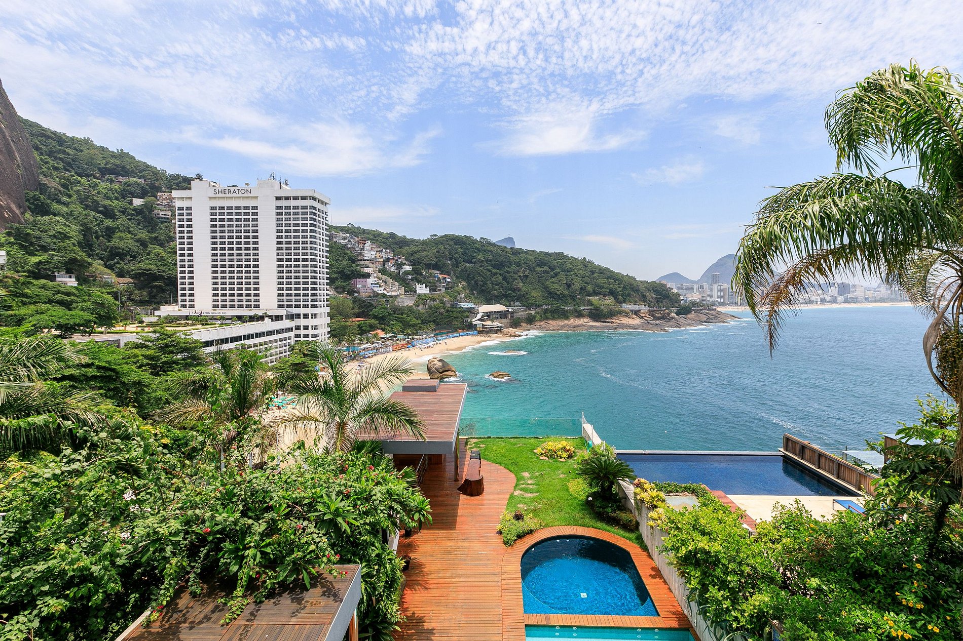 Погрузитесь в роскошь потрясающей частной виллы с четыремя роскошными люксами, расположенными в двух отдельных зданиях, и панорамными видами на океан. Она находится в уединенном комплексе кондоминиумов недалеко от знаменитого пляжа Леблон в Рио.
