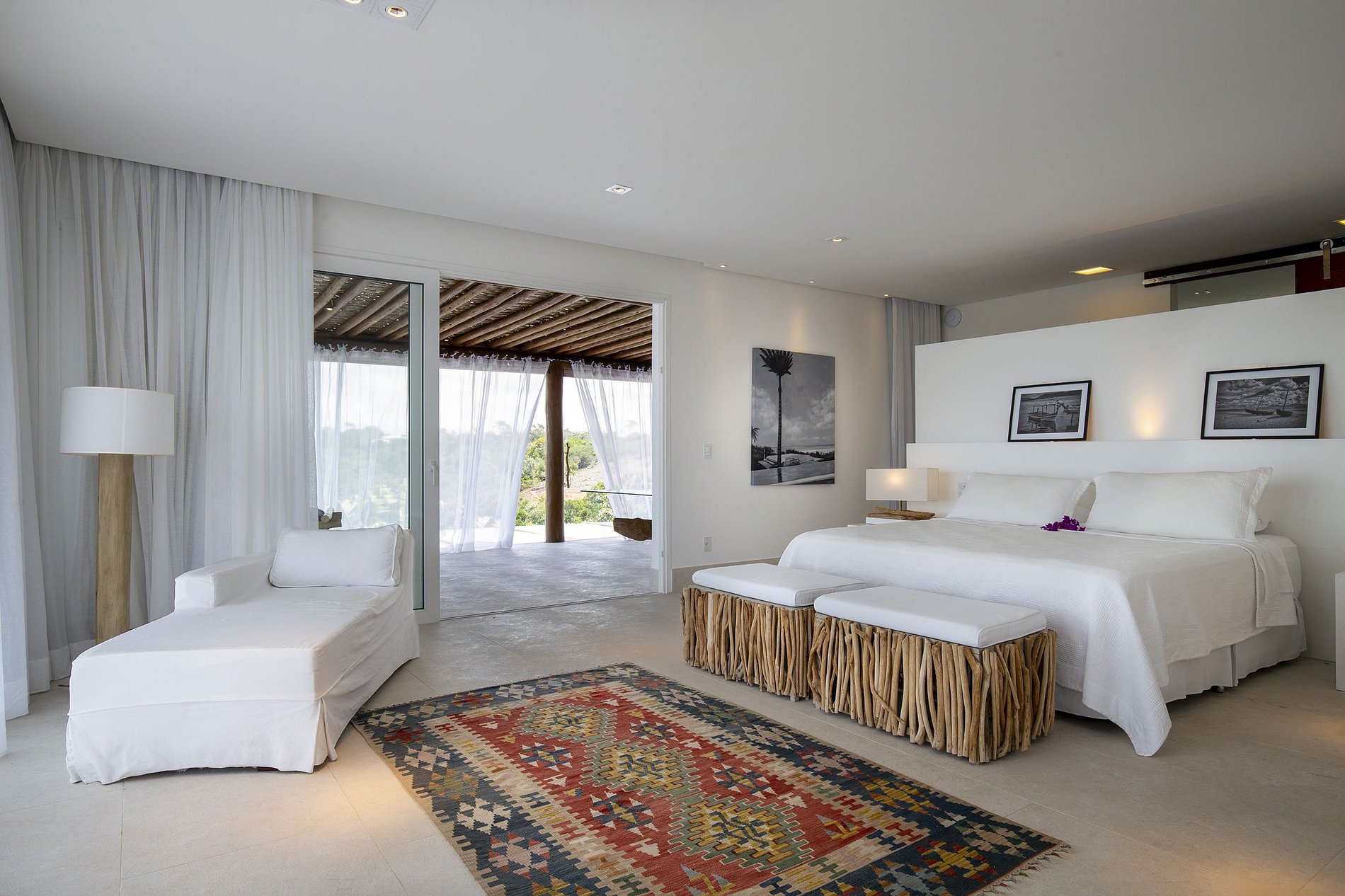 In addition, outside, there are two swimming pools, one with an infinity edge and the other in a reflecting pool. There is also a large glass-enclosed dry sauna overlooking the forest, a massage room with minibar, bathroom, showers and a very Bahian rest area with two hammocks. For those who want to stay active, there is also outdoor gym equipment available.