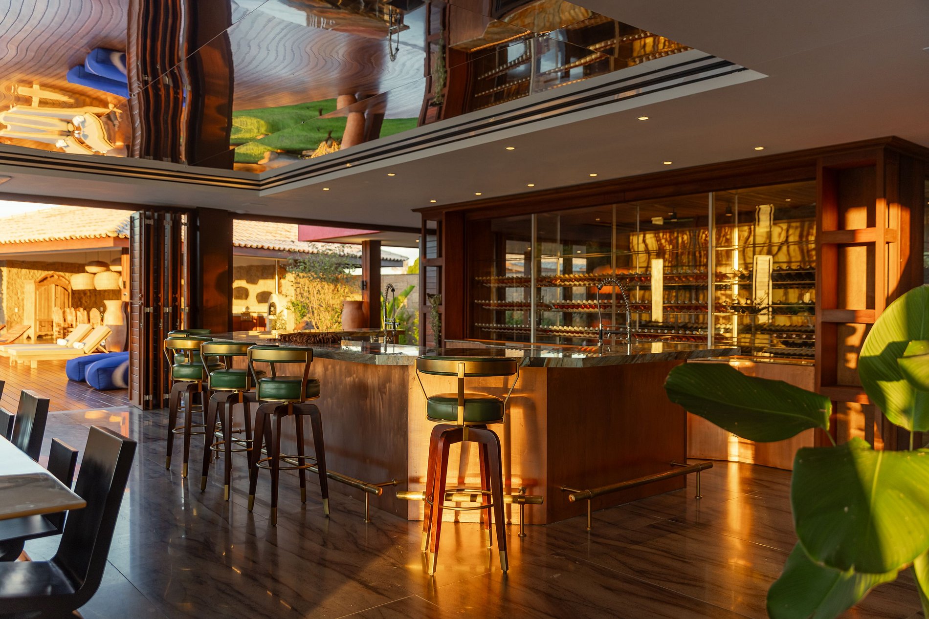 На территории виллы расположены инфинити-бассейн площадью 400 м² с интегрированным Aqua Bar, частный кинотеатр, винный погреб, гастрономическая зона и современный фитнес-центр и центр велнеса.